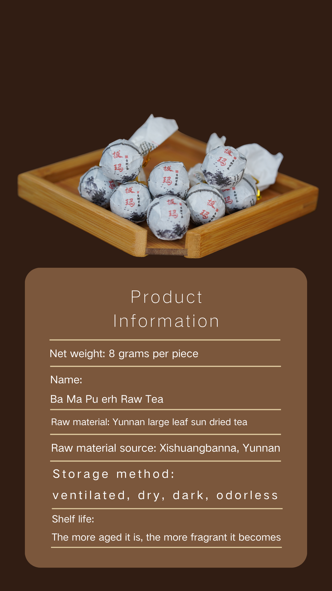 - Origin Authenticity:Sourced from Xishuangbanna,Yunnan — a region renowned for fertile soil and ideal climate for Pu-erh growth.